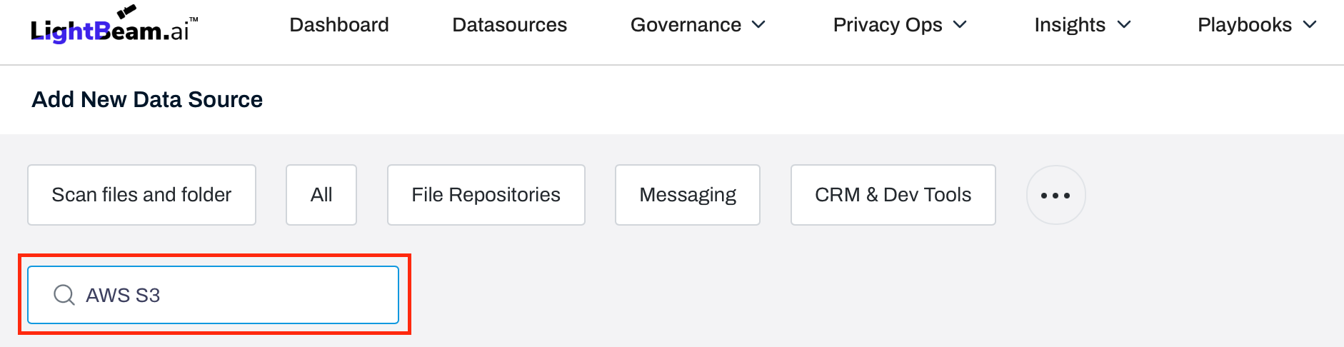<figure><img src="https://682442409-files.gitbook.io/~/files/v0/b/gitbook-x-prod.appspot.com/o/spaces%2F0FnJiPbEPpkm5U4tiZUM%2Fuploads%2FvtPRn9LBS5YAbg9HVS8C%2FScreenshot%202023-09-12%20at%209.05.07%20PM.png?alt=media&#x26;token=b91402aa-ceb3-41c6-bac0-8caaf88812e8" alt=""><figcaption><p>Figure 5.2(a) LightBeam AWS S3 - Scan selected buckets</p></figcaption></figure>