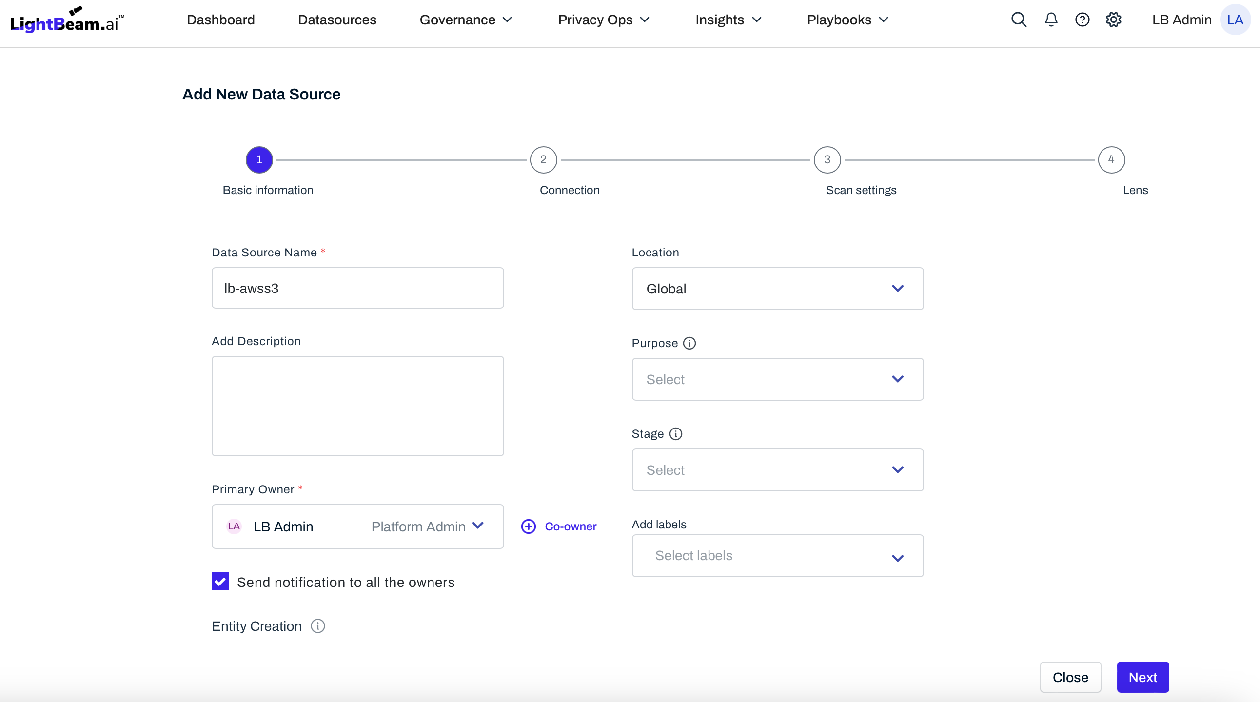 <figure><img src="https://682442409-files.gitbook.io/~/files/v0/b/gitbook-x-prod.appspot.com/o/spaces%2F0FnJiPbEPpkm5U4tiZUM%2Fuploads%2Fu7rVYJ1PIQRJGoEPFm8U%2Fbasic%20info.png?alt=media&#x26;token=720901e8-a4ee-4134-9ce4-4ef1e1187c56" alt=""><figcaption><p>Figure 3. LightBeam AWS S3 -  Basic Information</p></figcaption></figure>